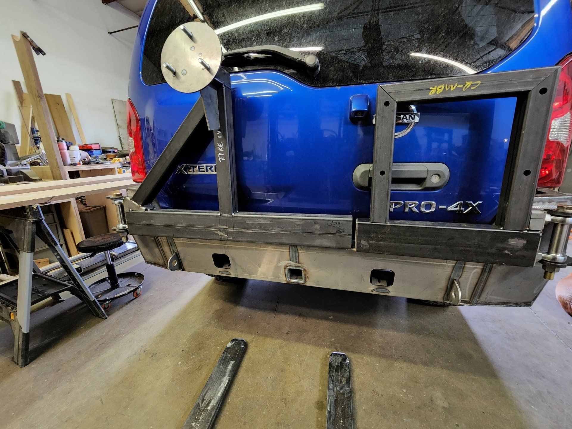 A customer bought a coastal off road DIY weld-together kit for his 2005 Xterra with two swing arms. We started by removing the old bumper. Next, we built off the mounting points from where the old bumper was bolted on. We continued piece by piece, following the body lines as closely as possible. We assembled the swing arms and set the angles for sag. Finally, we sent it off to get powder coating in semi-gloss super durable Cardinal powder.
