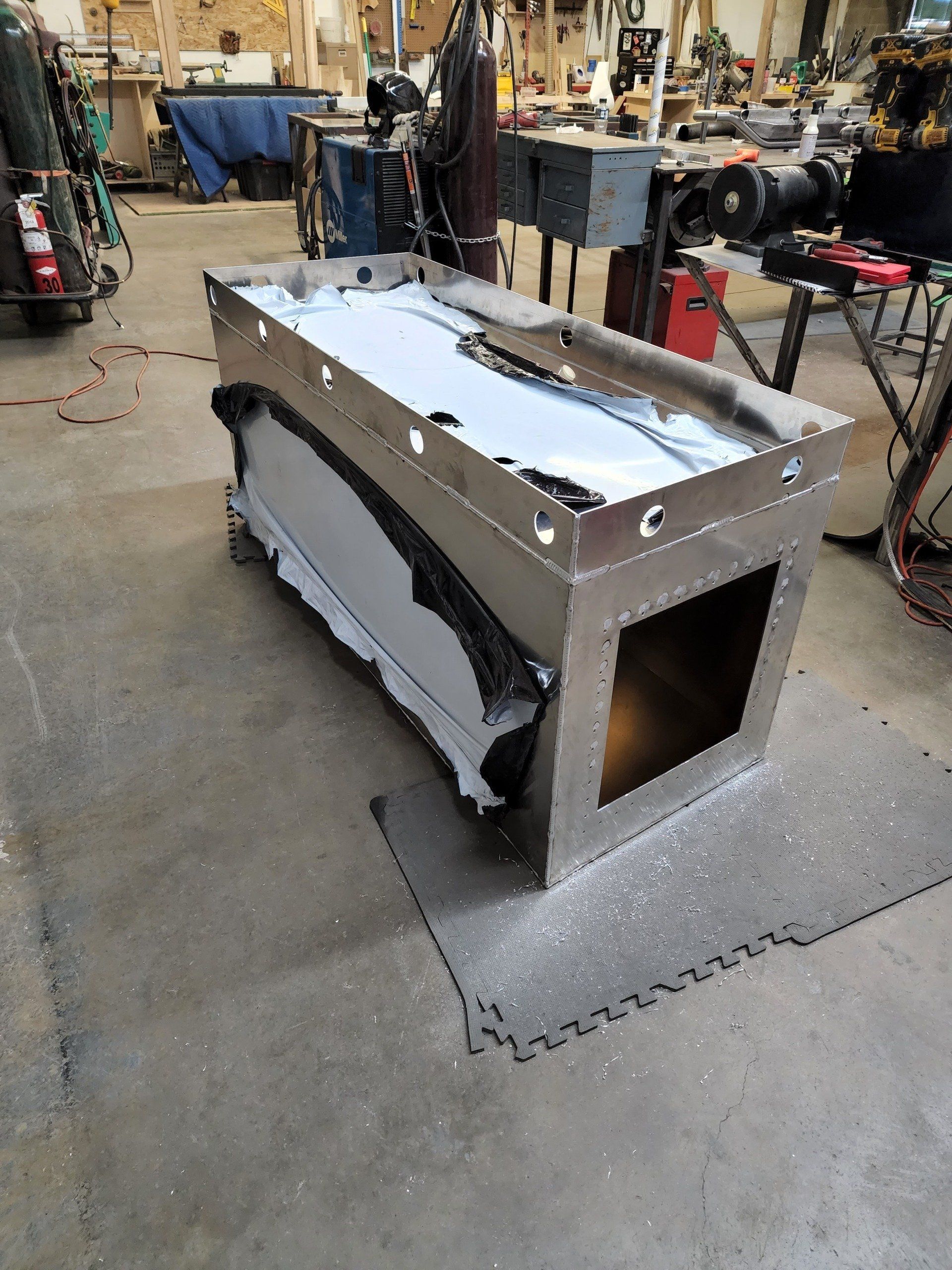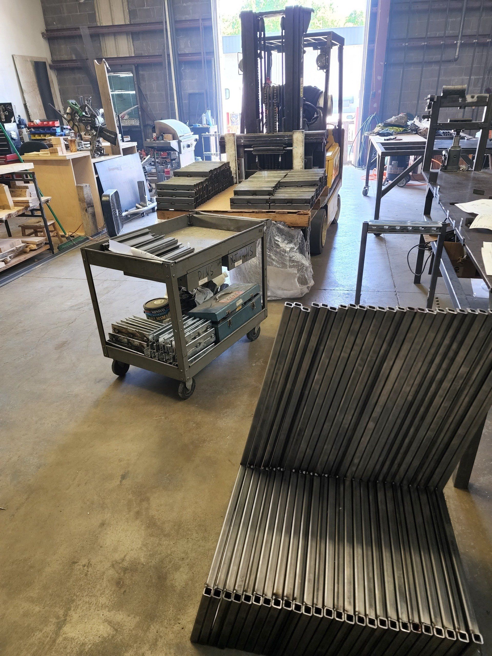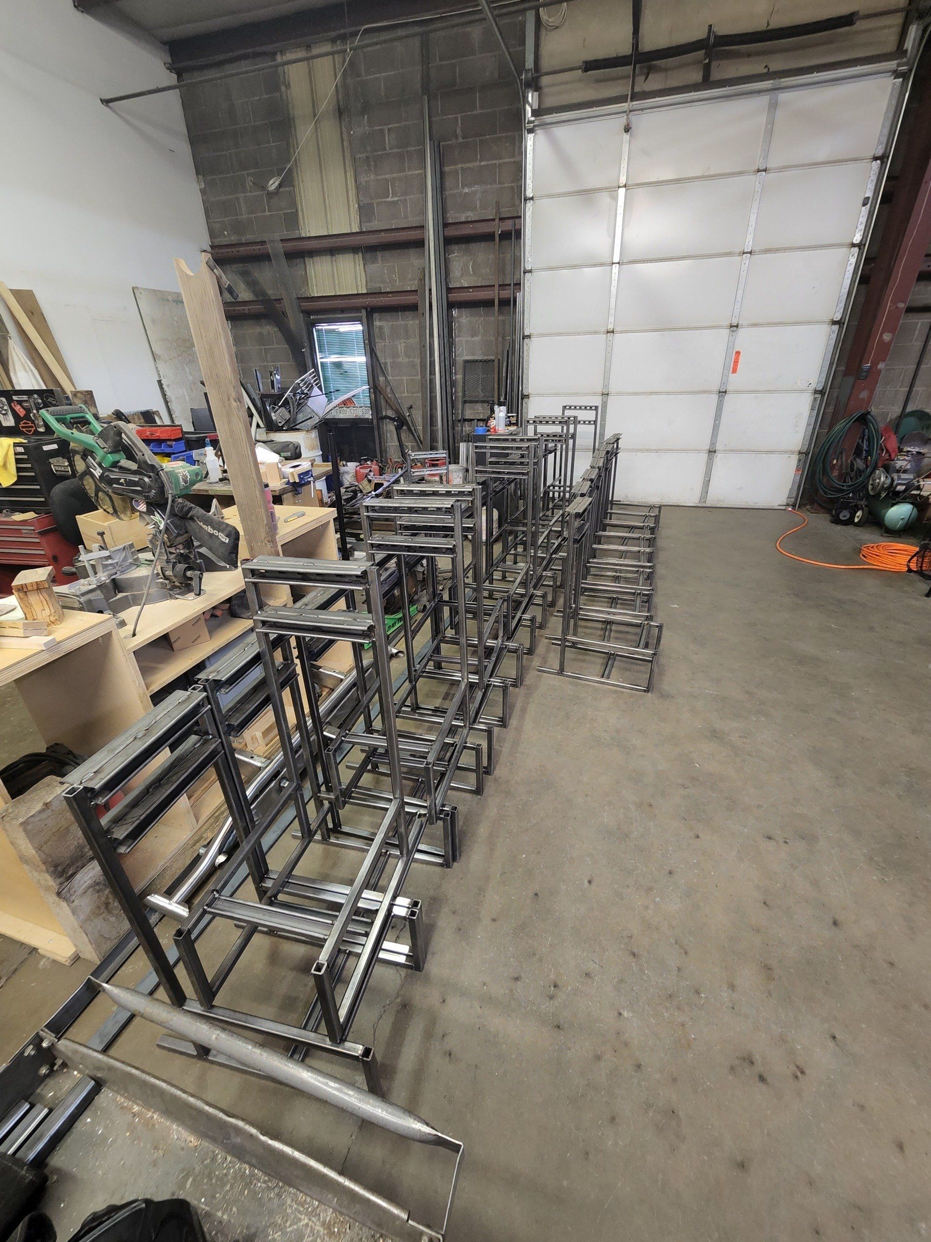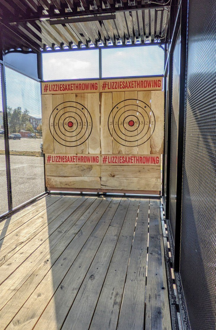 Lizzie's contacted us after having a bad experience with another company. They supplied the flatbed trailer and we supplied everything else. One by one we built each side, front, and back piece in the shop. Next, we used a forklift to raise each one onto the trailer and tack it securely in place. We added a handicap accessible ramp that folds away for traveling. The front consisted of two swinging doors for the targets to attach to. After two long, hot, months of outdoor building, it was sent off to be painted.